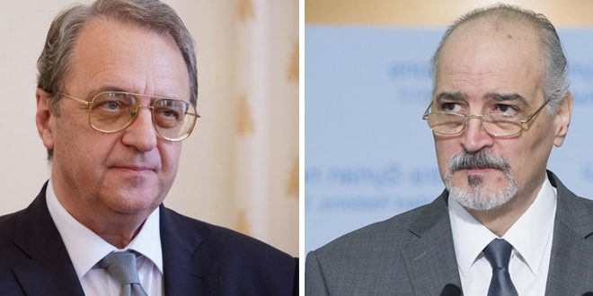 بحث الممثل الخاص للرئيس الروسي لشؤون الشرق الأوسط وبلدان أفريقيا نائب وزير الخارجية ميخائيل بوغدانوف مع سفير سورية لدى روسيا الاتحادية الدكتور بشار الجعفري خلال لقائهما اليوم، سبل تعزيز العلاقات الروسية السورية في مختلف المجالات.