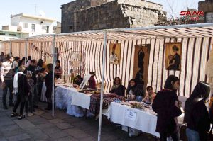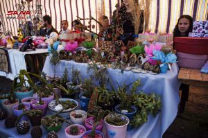 تشكيلة متنوعة من المنتجات والأعمال اليدوية ضمها بازار شهبا الخيري الثالث الذي افتتح اليوم على أرض المعبد الإمبراطوري الأثري وسط مدينة شهبا بالسويداء، وذلك بمناسبة عيدي المعلم والأم.