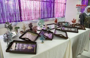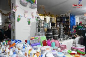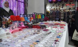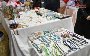 منتجات يدوية متنوعة تشمل منسوجات وإكسسوارات وتحفاً للزينة، أبدعتها أيادي المقيمين في دار الرحمة للأيتام، التابعة لجمعية الأنصاري الخيرية بدمشق، تم عرضها اليوم في سوق الرحمة الخيري في مبنى الدار بمنطقة ركن الدين.
