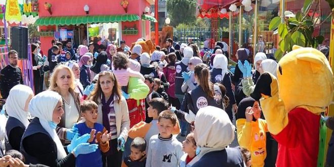 وبينت صبوح أن الفعالية تضمنت نشاطات فنية وترفيهية في تأكيد على أهمية تشاركية كل المؤسسات الأهلية الاجتماعية في بلسمة جراح الأهالي المتضررين نفسيا واجتماعيا، موضحة أنه تم اصطحاب الأطفال من مركز الإيواء عبر تأمين وسيلة نقل عن طريق غرفة تجارة حمص، وتنظيم حفل استقبال لهم بمدينة المعارض ضم أنشطة موسيقية وشخصيات كرتونية واسكتشات تمثيلية تتحدث عن النظافة الشخصية وأهمية المدرسة.