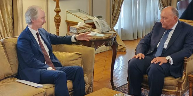 وقال المتحدث باسم وزارة الخارجية المصرية أحمد أبو زيد في بيان اليوم: إن شكري قدم لمبعوث الأمم المتحدة الخاص إلى سورية غير بيدرسون خلال لقائهما في القاهرة إحاطة حول الدعم الذي قدمته مصر لسورية، لمواجهة تبعات الزلزال، وحول زيارته إلى دمشق للوقوف إلى جانب سورية في تلك الأزمة، مشدداً على ضرورة استمرار تقديم الدعم من جانب جميع الأطراف لمساعدة سورية على الصمود أمام تلك التبعات.