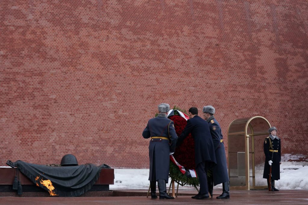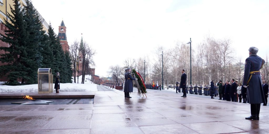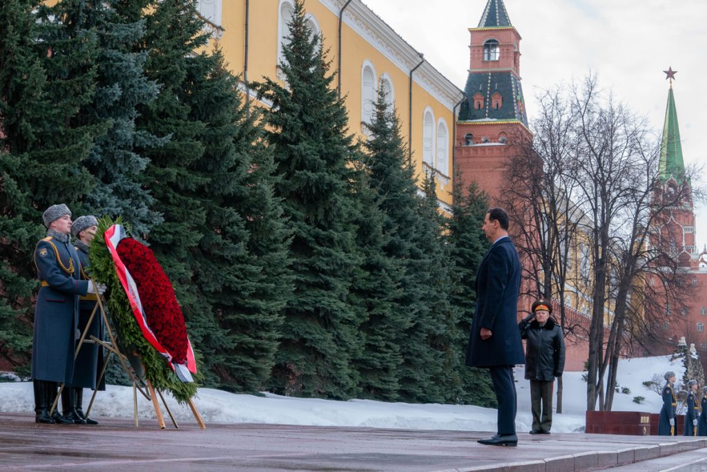 في أولى محطات زيارته الرسمية إلى روسيا الاتحادية، زار السيد الرئيس بشار الأسد والوفد المرافق له ضريح الجندي المجهول في موسكو، ووضع إكليلاً من الزهور على النصب التذكاري.