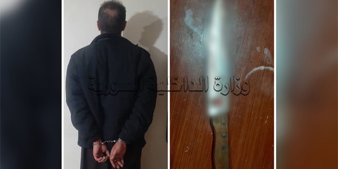 ألقى قسم شرطة المزة الشرقي القبض على رجل قام بطعن أحد الأشخاص عدة طعنات ضمن باص نقل داخلي بدمشق، ما أدى إلى وفاته.