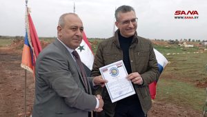 وعبر عضو المكتب التنفيذي المختص بمجلس محافظة حلب الدكتور عبد القادر دواليبي عن شكره وامتنانه للحكومتين والشعبين في أرمينيا وروسيا، لوقوفهم إلى جانب الشعب السوري، مثمناً الجهود الكبيرة المبذولة من قبل البعثة الإنسانية الأرمنية لإزالة الألغام، وخاصة بمحافظة حلب والتي ساهمت بتحقيق الأمان وعودة الحياة لجميع المناطق التي تم تطهيرها من مخلفات الإرهاب.