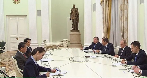أعلن الرئيس الروسي فلاديمير بوتين في لقاء مع وزير الخارجية الصيني فانغ يي أن العلاقات بين روسيا والصين بلغت مستوى لا سابق له.