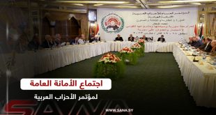 تحت عنوان “نعم لوحدة سورية وسيادتها ومشروعها القومي.. لا للحصار والعدوان على سورية” يعقد غداً في دمشق اجتماع الأمانة العامة لمؤتمر الأحزاب العربية الطارئ بدورته الـ 63، ويستمر على مدى يومين.