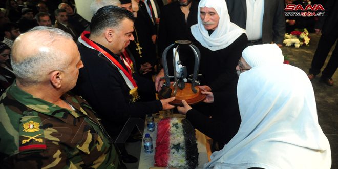 محافظ ريف دمشق صفوان أبو سعدى قال في كلمة خلال الفعالية: “إننا نتكرم اليوم بحضور أولياء أنبل وأطهر بني البشر الذين ضحوا بدمائهم فداء للوطن واستطاعوا صون الأمانة وإحقاق الحق والحفاظ على كرامة وعزة سورية”.