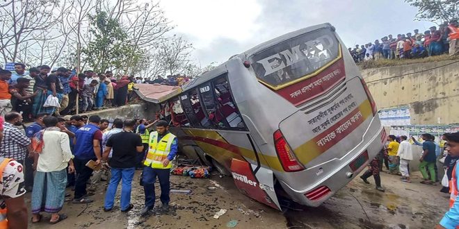 لقي 17 شخصاً مصرعهم وأصيب أكثر من 20 آخرين، جراء حادث انقلاب حافلة ركاب وسط بنغلاديش.