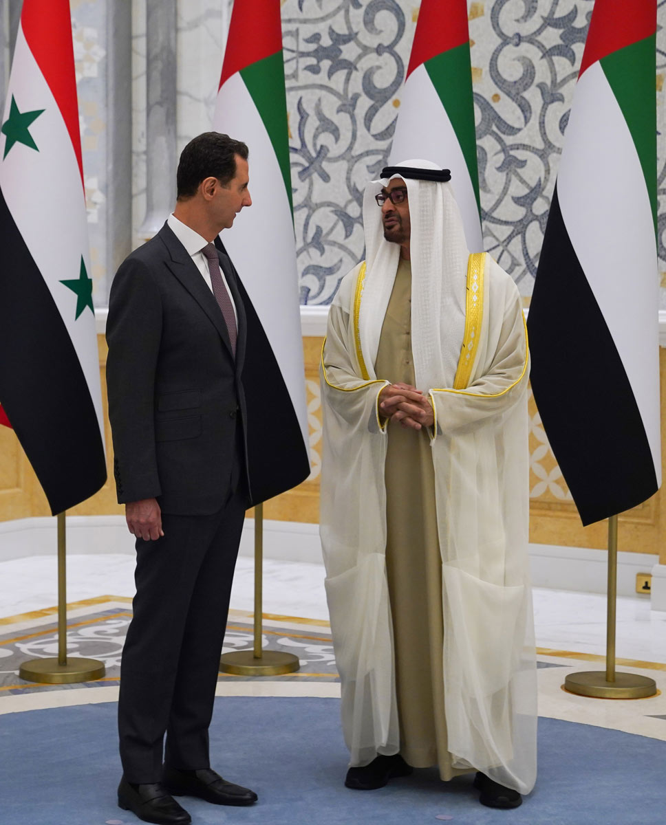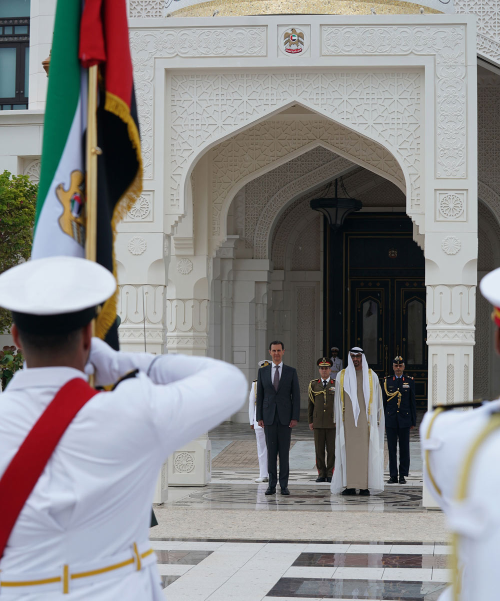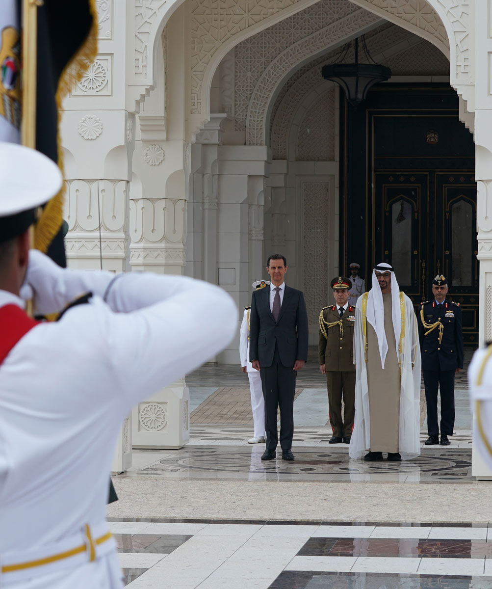 ثم توجّه الرئيس الأسد إلى قصر الوطن لبدء المحادثات مع صاحب السمو الشيخ محمد بن زايد آل نهيان رئيس دولة الإمارات العربية المتحدة.
