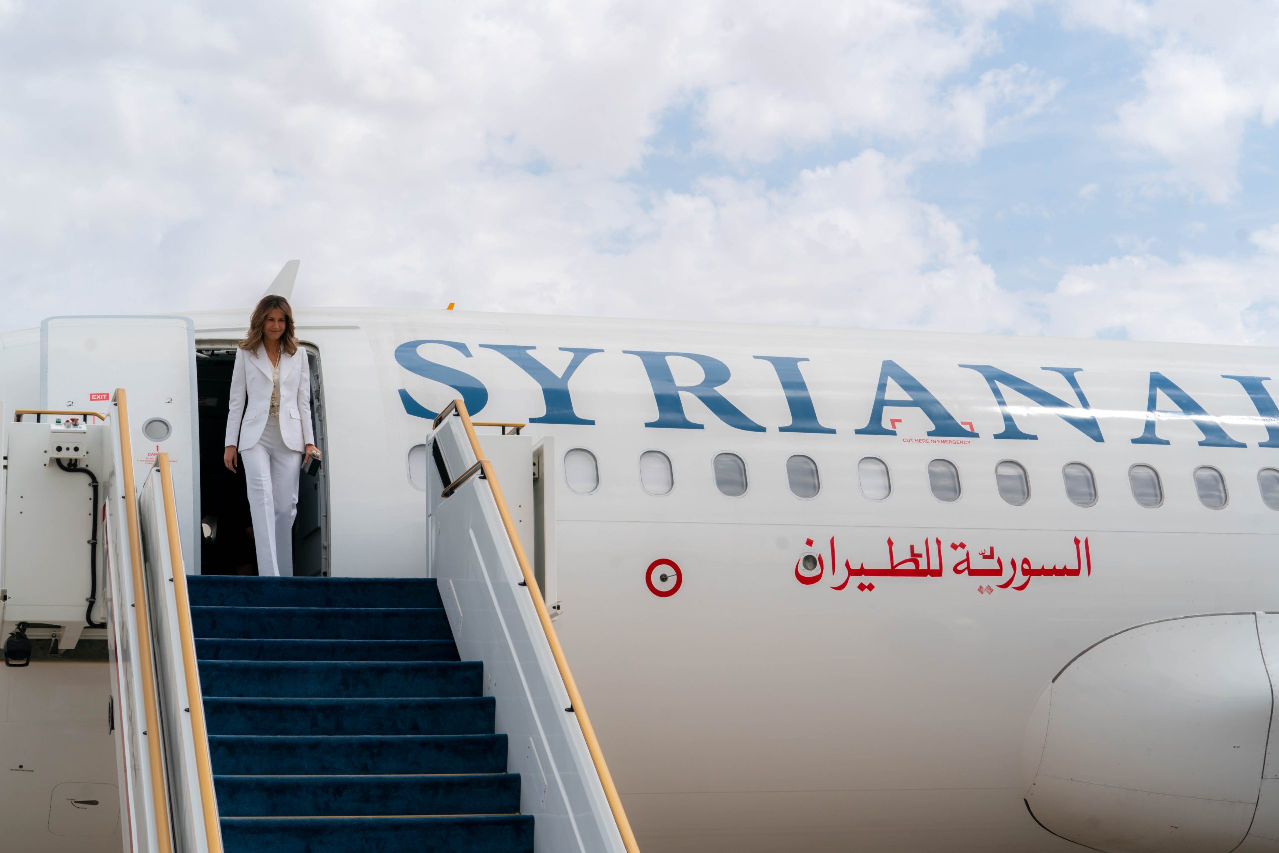 ورافقت طائرة الرئيس الأسد لدى دخولها أجواء دولة الإمارات عدة طائرات حربية ترحيباً بزيارة سيادته.
