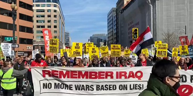 شارك أكثر من مئتي منظمة تقدمية حقوقية في الولايات المتحدة الأمريكية وعدد من أبناء الجالية السورية والعربية في مظاهرة احتجاجية بواشنطن للمطالبة برفع الحصار وإنهاء العقوبات الجائرة على الشعب السوري.