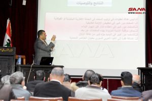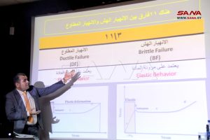 مدير التعليم المهني والتقانة بوزارة النقل الدكتور سلمان صبيحة أوضح أن هذه المحاضرة تخصصية وتهم قطاع الهندسة المدنية الإنشائية، ولا سيما بعد الزلزال الذي ضرب سورية في الـ 6 من شباط.