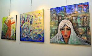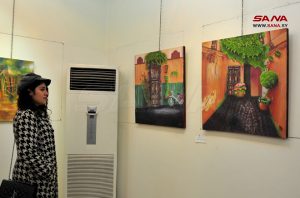 أما الفنانة الشابة غنى سقا أميني فرسمت دمشق القديمة بلوحتين بتقنية الإكريليك بأسلوب حاولت أن تضع بصمتها الخاصة بهما بدمج الواقع بالخيال.
