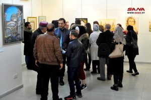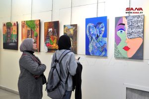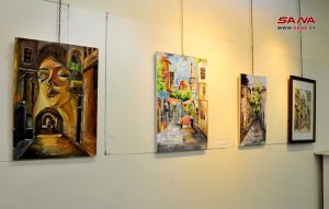 المعرض الذي أقامته جمعية بيت الخط العربي والفنون بالتعاون مع مديرية ثقافة دمشق، ضم 40 لوحة تنوعت في أساليبها وتقنياتها ومواضيعها للتعبير عن محبة دمشق وعراقتها وجماليات تفاصيلها.