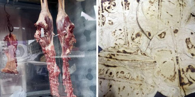 وأشار اليوسف إلى أن الضبوط شملت أيضاً محلي قصابة في حيي الميدان والحميدية بمخالفة التعامل باللحم المذبوح خارج المسالخ المعتمدة والتعامل بأنثى غنم العواس، ومحلا لبيع الفروج بمخالفة حيازة وعرض أجزاء فروج فاسدة وغير صالحة للاستهلاك البشري، إضافة إلى ضبط محال في قرى المزينة والحجر الأبيض والجابرية بمخالفة حيازة وعرض مواد منتهية الصلاحية.