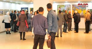 دمشق-سانا اجتمعت أعمال مجموعة من الفنانين التشكيليين الفلسطينيين والسوريين مع أعمال فنان الكاريكاتير