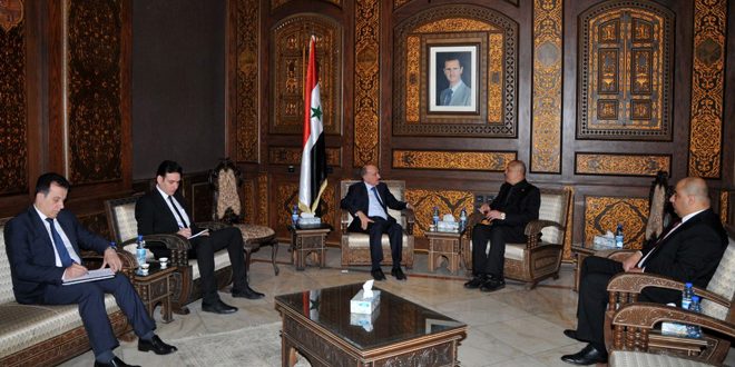 بحث وزير الداخلية اللواء محمد الرحمون مع القائم بأعمال السفارة العراقية في دمشق ياسين الحجيمي علاقات التعاون المشترك بين البلدين في مختلف المجالات، وخاصة في المجال الأمني ومكافحه الإرهاب.