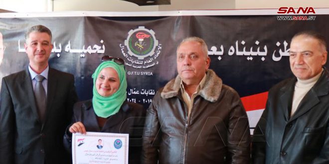 كرم اتحاد عمال حمص اليوم 15 من الأمهات العاملات المتميزات في المحافظة، بمناسبة عيد الأم.