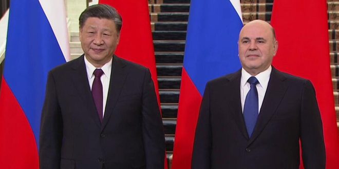 وكان الرئيس الصيني وصل إلى موسكو أمس في زيارة رسمية التقى فيها الرئيس بوتين، وجرى التأكيد على الاهتمام الكبير بتنمية العلاقات الثنائية والتعاون لتحقيق الأهداف المتشابهة.