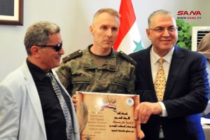 من جانبه تحدث اللواء البحري أوليغ غورينوف نائب رئيس مركز التنسيق الروسي عن دور المركز في دعم الفعاليات المجتمعية في سورية، وأهمية تكريم الأم والمعلم لدورهما الكبير في المجتمع.