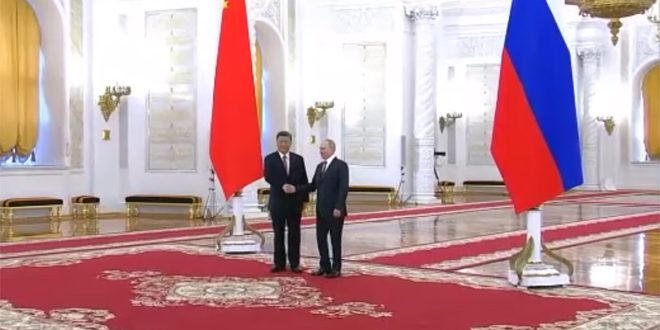 بدأت في موسكو اليوم أعمال القمة بين الرئيس الروسي فلاديمير بوتين ونظيره الصيني شي جين بينغ بلقاء ثنائي قبل أن ينضم إليهما أعضاء الوفدين.