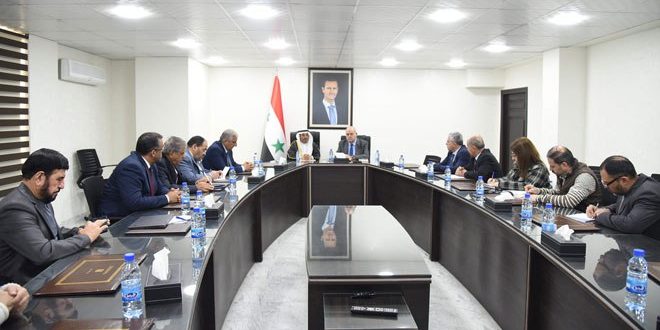 بحث وزير التجارة الداخلية وحماية المستهلك الدكتور عمرو نذير سالم مع رئيس الهيئة العربية للإنماء والاستثمار الزراعي محمد بن عبيد المزروعي والوفد المرافق له تطوير العلاقات التجارية والفرص الاستثمارية المطروحة والتعاون المشترك في المرحلة القادمة بما يخدم المستهلك السوري وأمنه الغذائي.