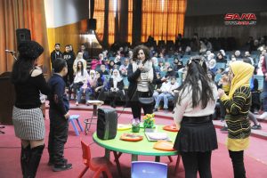 أمجد رحيل عضو قيادة فرع جامعة دمشق للاتحاد الوطني لطلبة سورية أشار إلى أن اتحاد الطلبة حرص على تقديم كل التسهيلات والتدريبات اللازمة من أجل إقامة الفعالية ومشاركة هؤلاء الأطفال فرحتهم واحتفالهم وتقديم الهدايا والشهادات التكريمية لهم.