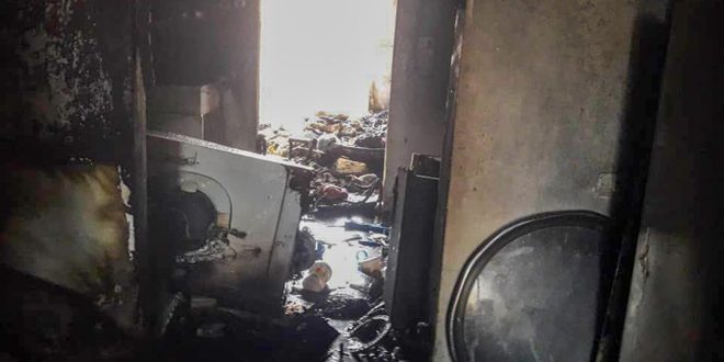 أخمد عناصر الإطفاء في اللاذقية حريقاً نشب في منزل جراء انفجار أسطوانة غاز في حي الغراف في مدينة اللاذقية اليوم.