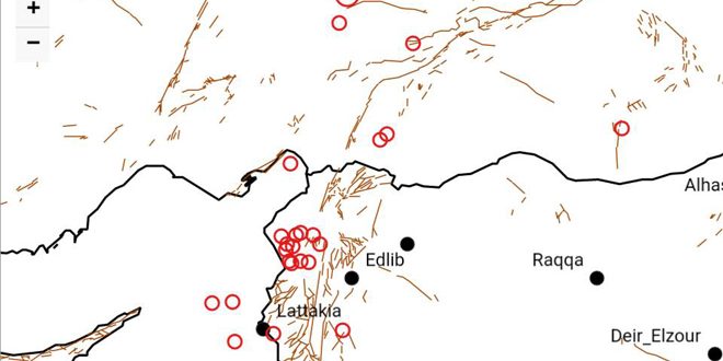وأوضح المركز على صفحته الرسمية في الفيسبوك أنه سجلت في الساعة الـ 8 ودقيقة واحدة هزة أرضية خفيفة شدتها 1.8 درجة على مقياس ريختر جنوب شرق اللاذقية بـ 15 كيلومتراً.