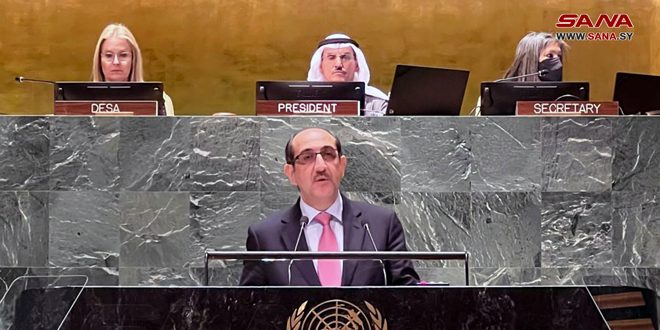 وفي كلمة أمام مؤتمر الأمم المتحدة لاستعراض منتصف المدة لتنفيذ أهداف العقد الدولي للعمل “الماء من أجل التنمية المستدامة 2018 -2028” بعد مرور أكثر من أربعة عقود على آخر مؤتمر أممي للمياه، أعرب صباغ عن ترحيب سورية بعقد المؤتمر الذي يضع المياه في أعلى مستوى من الاهتمام ويسلط الضوء على محورية المياه في حياتنا اليومية وارتباطها المباشر بالصحة والمناخ والطاقة والتنمية الاقتصادية، ويشير إلى أهمية تعزيز التعاون الدولي في هذا المجال وتحقيق وتسريع التقدم نحو الوصول الشامل إلى مياه الشرب الآمنة، والصرف الصحي بحلول عام 2030.