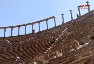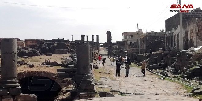 زارت مدينة بصرى الشام الأثرية اليوم مجموعة سياحية مؤلفة من 14 سائحاً من جنسيات إسبانية وبرتغالية.