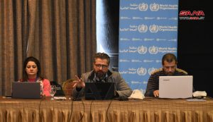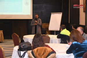 أقامت وزارة الصحة اليوم بالتعاون مع منظمة الصحة العالمية ورشة عمل للإعلاميين حول بناء القدرات للقيام بحملات توعية إعلامية ونفسية في أوقات الأزمات والكوارث (بعد الزلزال) وذلك في فندق داما روز بدمشق.