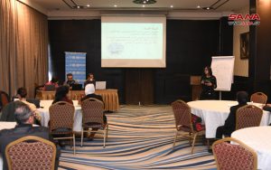 الباحثة الاجتماعية أسمهان زهيره من دائرة الصحة النفسية تحدثت عبر محاضرتها عن الخطوات التي اتخذتها وزارة الصحة لضمان الصحة النفسية للأشخاص المتضررين في محافظات اللاذقية وحلب وحمص وإدلب والحسكة ودير الزور وطرطوس عن طريق 301 طبيب مدرب على برنامج رأب الفجوة والإسعاف النفسي الأولي والتداخلات السلوكية.