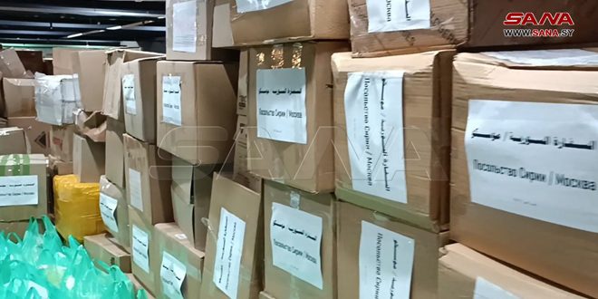 وقالت السفارة في بيان لها اليوم: إن “المساعدات سوف ترسل على متن خطوط أجنحة الشام التي تغادر موسكو يوم الخميس المقبل”.