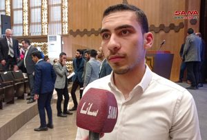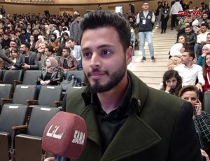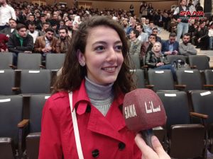 وفي كلمة لها نوهت دارين سليمان رئيسة الاتحاد الوطني لطلبة سورية باستجابة الطلبة ودورهم في مواجهة تداعيات الكارثة عندما كانوا في مقدمة المتطوعين للأعمال الإغاثية وخاصة في جامعة حلب، مثبتين قدرة شباب سورية على التفاعل والمبادرة.
