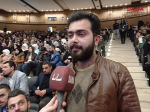 بمناسبة الذكرى الثالثة والسبعين لعيد الطالب العربي السوري كرّم المكتب التنفيذي للاتحاد الوطني لطلبة سورية خلال حفل مركزي في رحاب جامعة حلب الطلبة المتطوعين المشاركين بالاستجابة لكارثة الزلزال المدمر الذي ضرب سورية في السادس من شباط الماضي، وذلك على مدرج الشهيد باسل الأسد الجامعي.