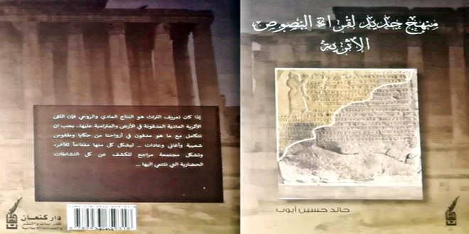 يبحث كتاب الباحث “منهج جديد لقراءة النصوص الأثرية” في تعريف التراث المادي والروحي، فاللقى الأثرية المادية المدفونة في الأرض والمترامية عليها يجب أن تتكامل حسب المؤلف، مع ما هو مدفون في أرواحنا من حكايات وطقوس شعبية وأغان وعادات.