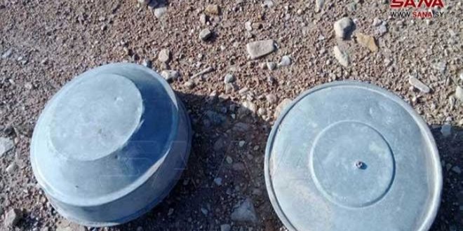 وذكر مراسل سانا في حماة أن لغما من مخلفات إرهابيي (داعش) انفجر في أراضي منطقة دويزين إلى الجنوب الشرقي من مدينة سلمية بريف حماة ما أدى إلى استشهاد مواطنين اثنين.