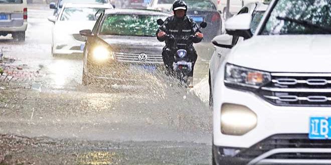 جدد المركز الصيني للأرصاد الجوية اليوم إصدار إنذار باللون الأزرق، للتحذير من العواصف المطيرة في أجزاء من البلاد.