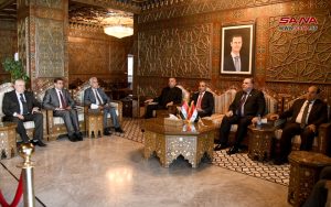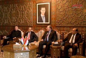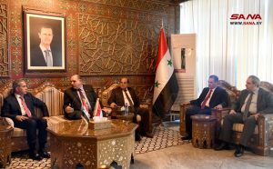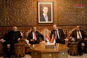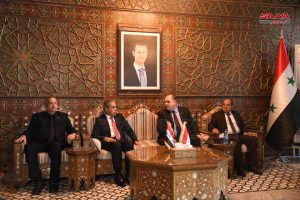 وكان باستقبال الوفد في مطار دمشق الدولي وزير العدل القاضي أحمد السيد، وعدد من القضاة.