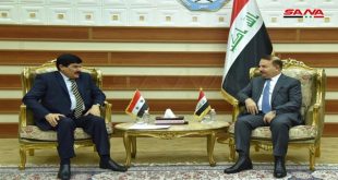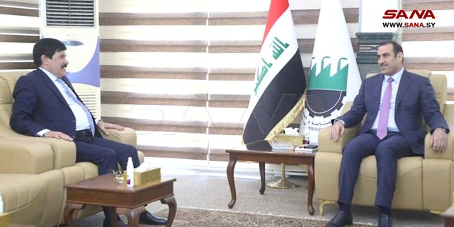بحث وزير الصناعة والمعادن العراقي خالد بتال النجم مع سفير سورية في العراق صطام جدعان الدندح آفاق تعزيز التعاون بين البلدين في مختلف المجالات الصناعية.