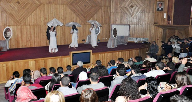 أقام اتحاد الطلبة فرع جامعة البعث اليوم عرضا مسرحيا لفرقة الاتحاد بعنوان بيت بلا شرفات تأليف “هشام كفارنة” وإخراج “حسين ناصر” وذلك على المدرج الكبير بكلية الآداب.
