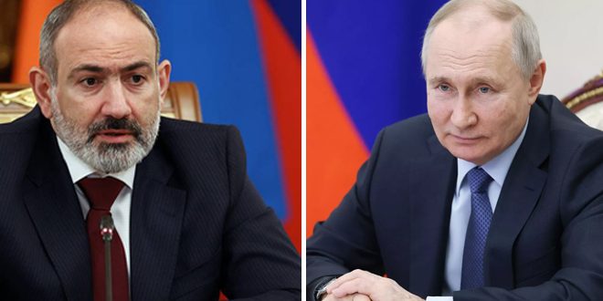 بحث الرئيس الروسي فلاديمير بوتين مع رئيس الوزراء الأرميني نيكول باشينيان خلال اتصال هاتفي اليوم الوضع في إقليم ناغورني قره باغ.