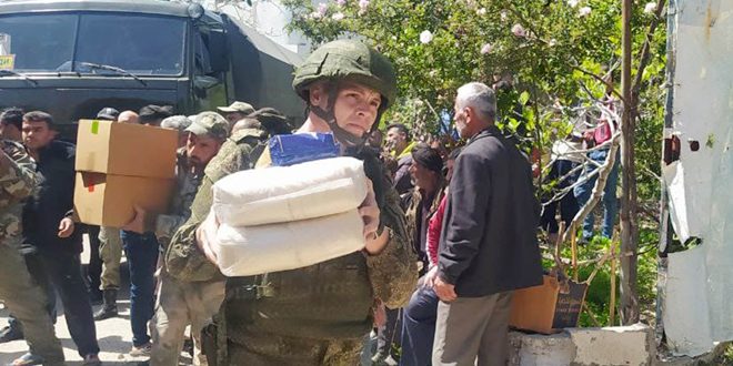 وأوضح الرائد ألكسندر المسؤول عن توزيع المساعدات الإنسانية في مركز التنسيق الروسي في تصريح لمراسل سانا أن المساعدات شملت مواد غذائية وألبسة ومواد تموينية، لافتاً إلى استمرار تقديم المساعدات للوصول إلى جميع المناطق المتضررة.
