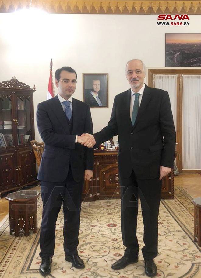 بحث سفير سورية في روسيا الدكتور بشار الجعفري مع وزير خارجية أبخازيا أينال أردزينبا خلال لقائهما اليوم سبل تعزيز التعاون، والتنسيق بين البلدين الصديقين في جميع المجالات.