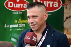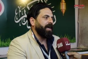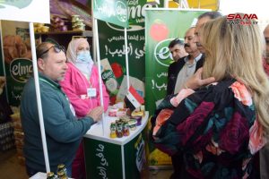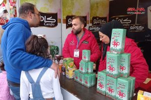 كاميرا سانا رصدت آراء عدد من المشاركين، حيث تحدث باسل فرجو ممثل شركة الدرة الغذائية عن مشاركته بالمعرض بأكثر من 120 صنفاً، مع إجراء حسومات على منتجاتها من المعكرونة وعجينة التمر ومستلزمات وحلويات العيد بنسبة 50 بالمئة.