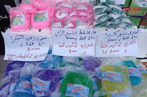 وقال محمد خطاب مدير مبيعات شركة سلا للمنظفات إنه يقدم منتجاته من المنظفات المتعلقة بالسجاد وسوائل الجلي بجودة عالية وسعر منافس في السوق، وتم تخفيف العبء على المستهلك من خلال تعبئة المنتج بالأكياس دون العبوات البلاستيكية وتعويض ذلك بالوزن، بينما نوه خالد عصعص إلى أنه يشارك بمختلف أنواع العطورات والشامبو ومساحيق التجميل والزيوت النباتية، حيث يتم تقديم عبوات مجانية مع كل قطعة، إضافة للحسومات الكبيرة على الأسعار.