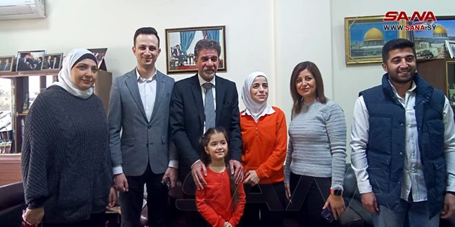 كرم مدير عام دائرة العلاقات العربية لمنظمة التحرير الفلسطينية أنور عبد الهادي اليوم الطفلة شام البكور، بطلة تحدي القراءة العربي بموسمه السادس، وذلك بمقر دائرة العلاقات العربية بدمشق.