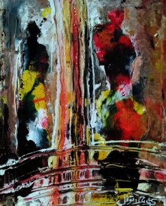 أما استخدام لونين في بعض اللوحات “أبيض وأسود” فهو ثنائية الحياة، كما يراها نوفل بين الخير والشر والحقيقة والخيال والنور والظلام، وتولد التأثير المتبادل بينهما، مبيناً أن اللونين يخلقان حوارية بينهما وبين الفنان الذي هو حالم بطبعه وبخياله يخاطب عالم الغيب الذي يتوقعه أجمل.