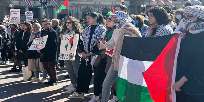 شارك المئات من أبناء الجاليات الفلسطينية والعربية ومتضامنون أمريكيون في مظاهرة بمدينة بوسطن بولاية ماساتشوستس تنديداً بالعدوان الإسرائيلي على المسجد الأقصى.